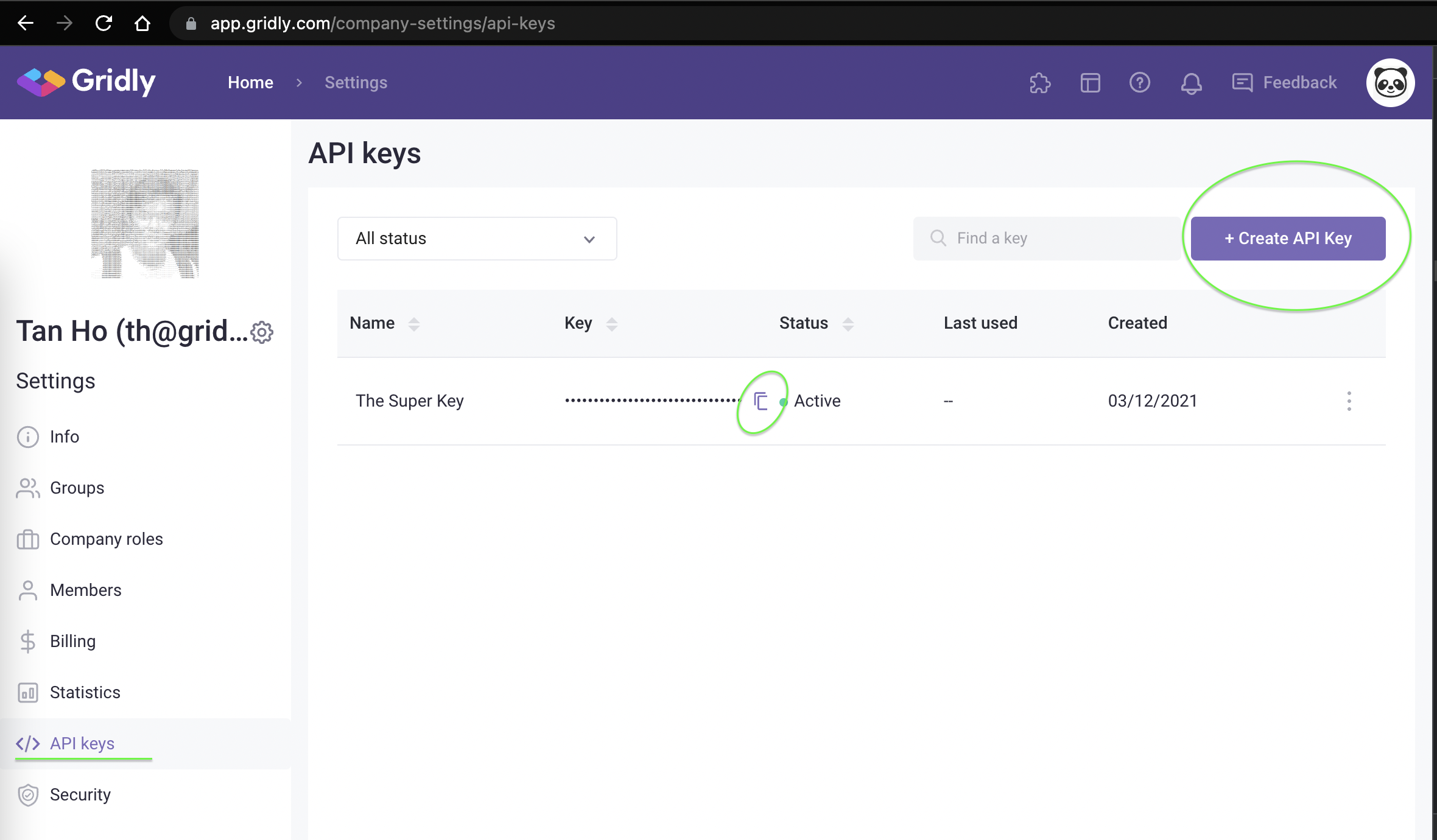 - To quickly get your API key, access your Gridly Dashboard, then select a Grid View and you can find the key in API quick start right panel.